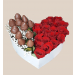 lindo arreglo en forma de corazon con rosas y frutilla con chocolates