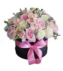 rosas rosadas y blancas en caja