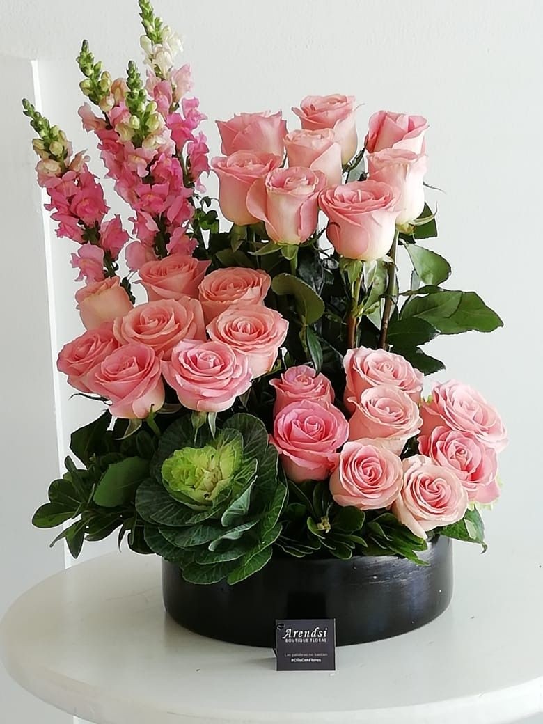 rosas rosadas en caja negra